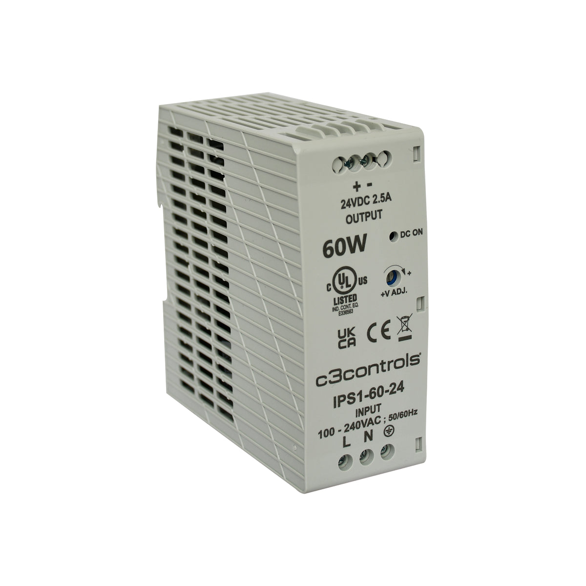 IPS1-60-24 | IPS1-60-24, Series IPS, 60W, 24V/2.5A DIN rail mounted Power Supply, UL Listed | C3 Controls