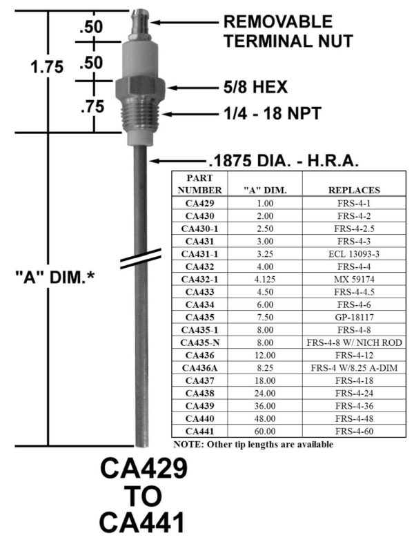 CA433-1 | FLAME ROD - A DIM = 4.75 | Crown Engineering