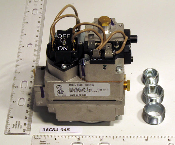 36C84-945 | 24v Gas Valve 3/4" X 3/4" Redundant (pilot) Valve Fast Opening 1/4"pilot Fitting Reducer Bushings Lp Kit Three 1/4" Spade Terminals And One 5/16" Diameter Pin Terminal One 24" Lead With Barrel And 1/4 | WHITE-RODGERS