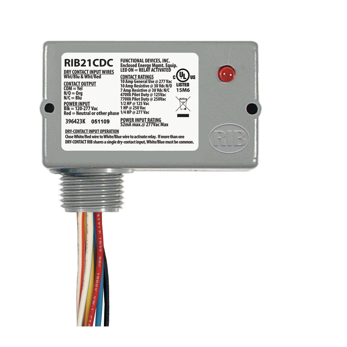 RIB21CDC | Enclosed pilot relay,Class2 Dry Contact input,120-277Vac pwr, 10A SPDT | RIB RELAYS