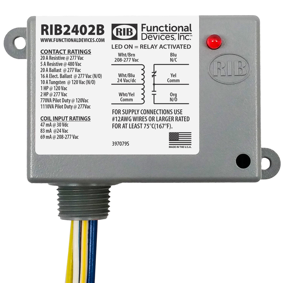 RIB2402B | Enclosed Relay 20Amp SPDT 24Vac/dc/208-277Vac | RIB RELAYS