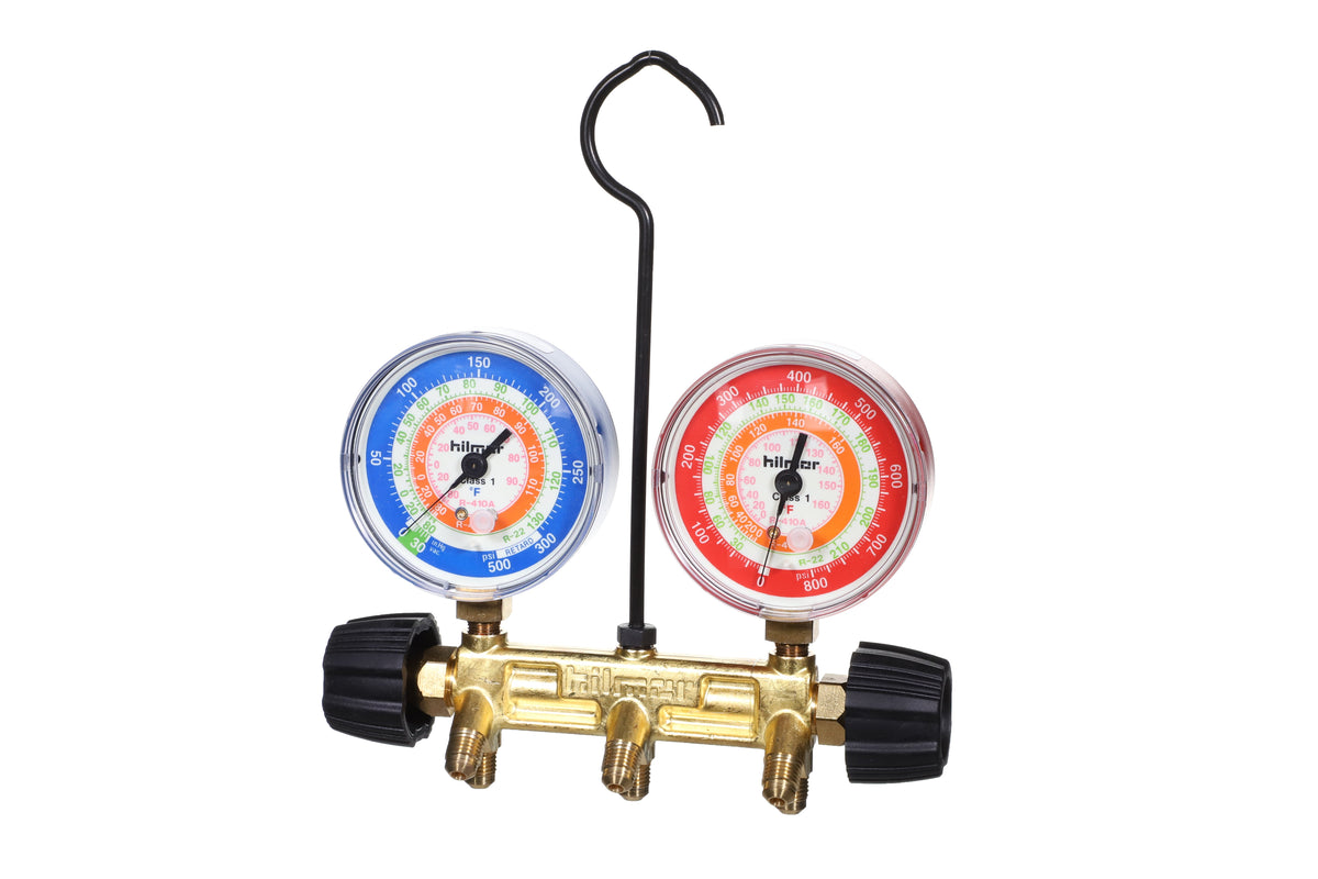 Invest in the DiversiTech Manifold Basic today and elevate your HVAC system's efficiency and performance. Our HVAC supply store offers the best prices and fast shipping for your products! The hilmor 2-valve Basic Brass Manifold with 60” Refrigeration Hoses provides all the features you’ve come to expect from a standard manifold, and then some. It has a durable design, improved accessibility and smart functionality. The gauges have been optimized for greater 3-1/8” readability with improved graphics, high-contrast color and glow-in-the-dark functionality. Sold with hilmor 60” refrigeration hoses.