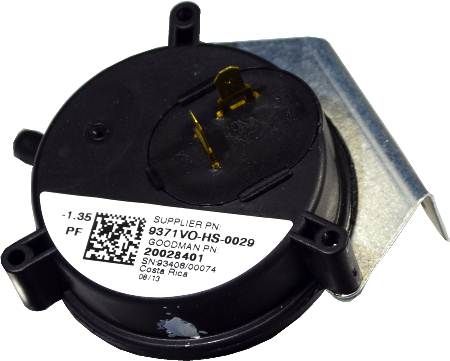 -1.35"wc SPST Pressure Switch (SKU: 20028401) by Amana-Goodman is a single-pole, single-throw pressure switch designed for use in HVAC systems. This switch operates with a pressure range of -1.35 inches of water column and is commonly used in applications such as monitoring air pressure in ducts, fans, and other air-handling equipment.