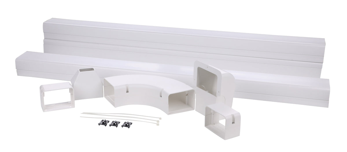 Our HVAC supply store offers exceptional pricing and swift delivery on this essential kit to help you optimize your HVAC system performance. Contact us today to inquire further and secure the best deals! The SpeediChannel™ 230-IKC4W 4 in. white installation kit by DiversiTech® provides a simple mix of the basic fittings used in a typical installation job. Included in the kit is one coupling, one wall penetration, one inside elbow, one long radius flat bend, and one pack of ten SpeediClips and 11 in. cable ties.