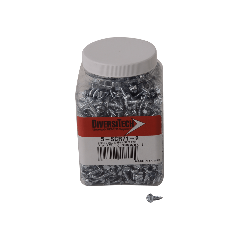 Screw Sht Met. 7x1/2 Taper Pt. from DiversiTech is a premium-quality fastener designed for secure and reliable connections in various applications. With its 7x1/2 dimensions and a tapered point, this screw provides excellent penetration and holding power in sheet metal. Crafted from durable materials, it offers superior strength and resistance to corrosion, making it ideal for demanding industrial environments.