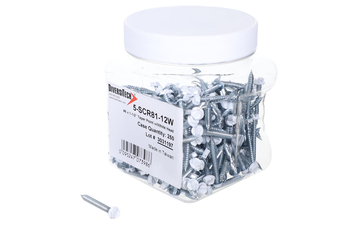 5-SCR81-12W | 8 x 1-1/2 Taper Point w/White Head, pack of 250 | DiversiTech