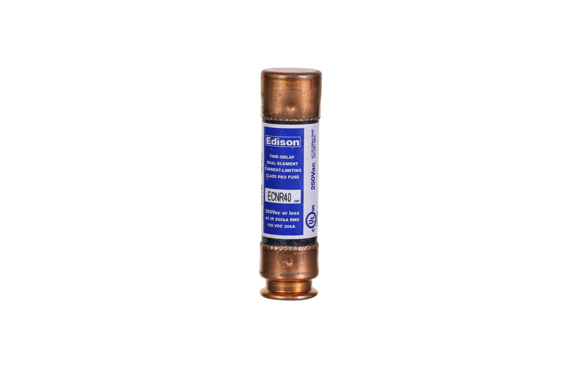 DiversiTech 7-CRNR40 Time Delay Fuse: Ultimate Electrical Protection for Industrial ApplicationsThe DiversiTech 7-CRNR40 is a premium time-delay fuse designed for robust electrical protection in industrial environments. This fuse offers exceptional performance in circuits with high inrush currents or surge conditions, providing a reliable and safe solution for sensitive electrical equipment.Crafted from high-quality materials, the 7-CRNR40 features a sturdy construction and durable components, ensuring long-lasting protection and optimal circuit performance. Its time-delay characteristic allows for momentary overloads without tripping, making it ideal for applications with motors, transformers, and other devices that require a controlled power-up sequence.With a current rating of 40 amps, the 7-CRNR40 effectively interrupts fault currents, preventing damage to equipment and ensuring personnel safety. Its compact design and easy installation make it a convenient and space-efficient solution for various applications.Choose DiversiTech 7-CRNR40 Time Delay Fuse for superior electrical protection, reliability, and peace of mind in your industrial operations. Trust our HVAC supply store for the best prices and fast shipping on all your industrial supply needs! The DiversiTech® 7-CRNR40 Dual Element Fuses – 250 volts, 40 Amps provides time delay for temporary over current conditions and motor running protection for heating and air conditioning equipment. Eliminates unnecessary maintenance from harmless overloads. U.L. Class RK 5, Standard for Safety 198E, Current Limiting Fuses, Interrupting Rating 200,000 Amps. rms. A.C.