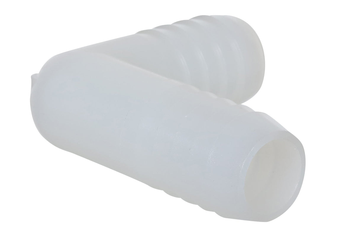 This fitting is available in a size of 5/8 inches, making it suitable for use with pipes of the same diameter. It is sold in packs of 2, providing convenience and stock for multiple installations. The elbow allows for flexibility and ease of installation in various piping systems, including those used in industrial, commercial, and residential settings. 5/8 inch 90° Nylon Elbow (Barb x Barb) has good resistance to water, oils, gasoline, as well as organic solvents. These can be used in cold and hot water applications, and show longtime weathering resistance. Pack of 2