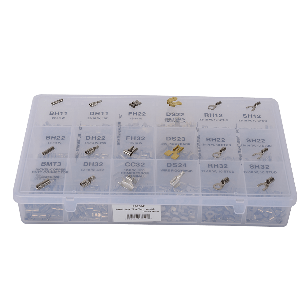Shop our HVAC supply store for the best prices and fast shipping on all your industrial supplies. Trust our quality products and exceptional service to keep your operations running smoothly. The PA25AP Transparent Plastic Boex with Terminal Assortment of appliance parts technician use most. Hi-Temperature and compressor terminals are made of soft, pliable, durable K resin with 18 compartments containing the most popular terminals.