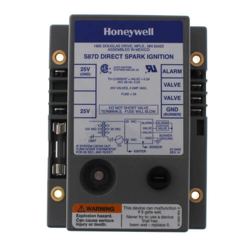 S87D1012 | DIRECT SPARK TIGNITION MODULE. 11 SEC. LOCKOUT. TWO ROD FLAME SENSE. FOR USE WITH 24V GAS VALVE. INCLUDES ALARM TERMINAL. | Resideo