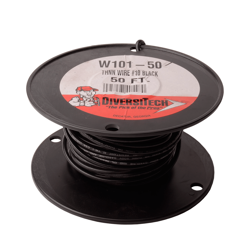 DiversiTech W101-50: High-Conductivity Copper Wire for Electrical InstallationsThis DiversiTech W101-50 wire is a premium choice for industrial and commercial electrical installations. Its 10-gauge copper construction ensures excellent conductivity and current-carrying capacity. The black insulation offers high resistance to abrasion and weathering, making it suitable for both indoor and outdoor use. With a length of 50 feet, this wire provides ample coverage for various wiring needs, including lighting, power distribution, and control systems. Whether you're a professional electrician or a DIY enthusiast, the DiversiTech W101-50 wire is an ideal solution for your electrical projects.We offer the best prices and fast shipping for your products! The DiversiTech® W101-50 Black Stranded Copper Wire on Spool, 10 Guage, 50 ft. Spool copper wire is UL listed and THHN wire. It is 19 strand copper and is 600 V as well as 90ºC rated.