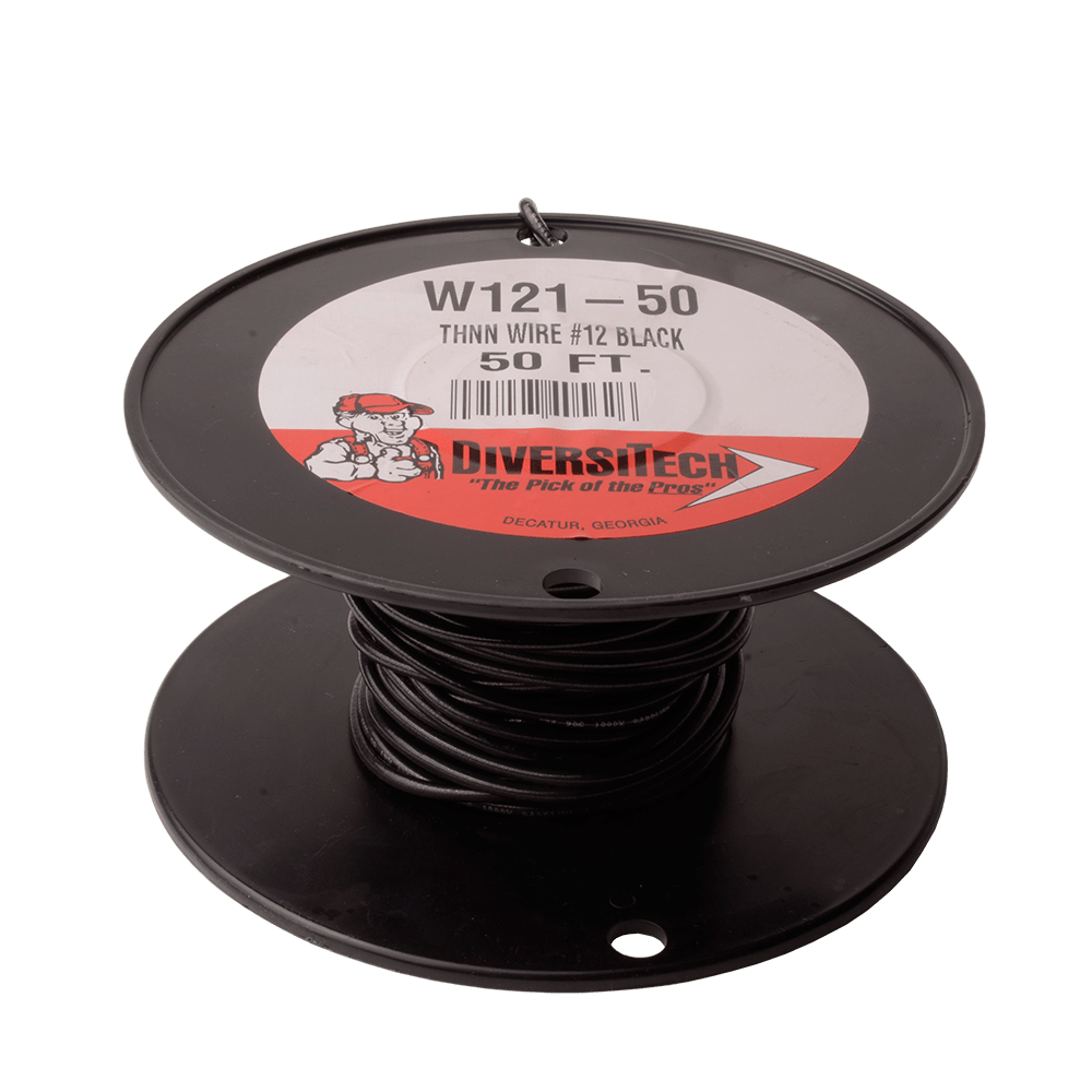 Order your DiversiTech Wire Copper 12G 50 ft. Black [W121-50] today from our HVAC supply store. We offer the best prices and fast shipping on all of our products. The DiversiTech® W121-50 White Stranded Copper Wire on Spool, 12 Guage, 50 ft. Spool copper wire is UL listed and THHN wire. It is 19 strand copper and is 600 V as well as 90ºC Stranded.