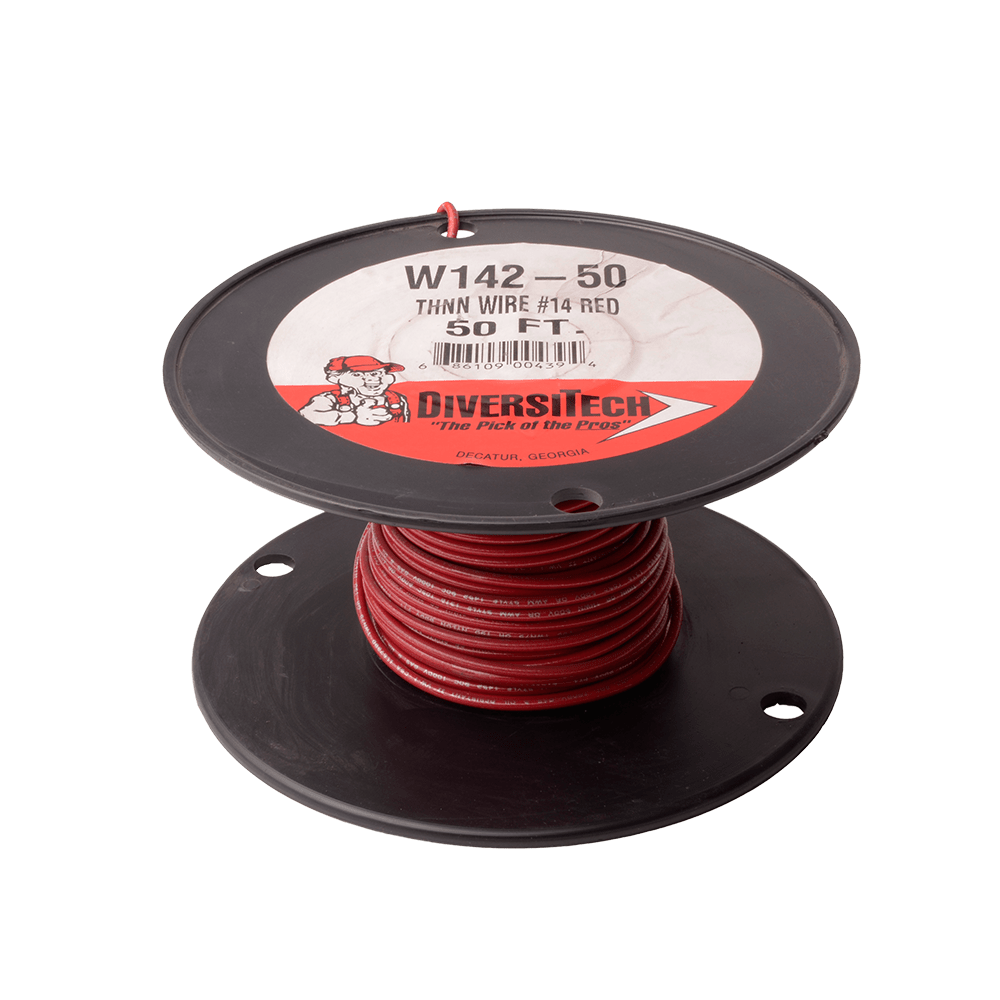 Shop our HVAC supply store now to take advantage of our competitive prices and fast shipping on all your industrial supply needs! The DiversiTech® W142-50 Red Stranded Copper Wire on Spool, 14 Guage, 50 ft. Spool copper wire is UL listed and THHN wire. It is 19 strand copper and is 600 V as well as 90ºC Stranded.
