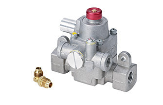 The Robertshaw® 1720 Series Thermomagnetic Safety Valve is a control used to cut off the flow of gas to the burner in the event of a pilot outage. The magnet assembly is energized by voltage generated by a thermocouple that is heated by the pilot flame. When this flame is extinguished, the thermocouple voltage decreases until a spring overcomes the magnetic force and closes off both the pilot and main gas. This control can be used for commercial and residential ovens, infrared heaters, chicken and pig brooders, recreational vehicle gas appliances and many more applications requiring automatic safety valves.